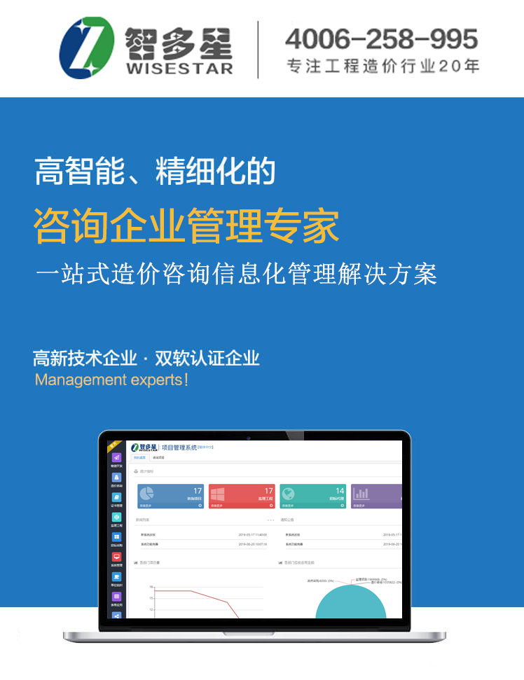公司简介:湖南智多星软件有限公司是湖南大商帮科技股份有限公司(股票代码:832557)全资子公司,工程建造软件研发与销售的高科技企业,通过双软资质权威认证。经过20年蓬勃发展,拥有品类丰富的软件产品,主要有工程造价软件、工程算量软件、施工管理软件、招投标软件、财政投资评审信息管理系统、建筑企业管理系统、工程造价咨询管理系统等。秉承“行业造价软件专家”理念,正版用户超过10万家,营销服务中心覆盖湖南省十四个地州市,并在三十多个省市建立了销售与服务网络。